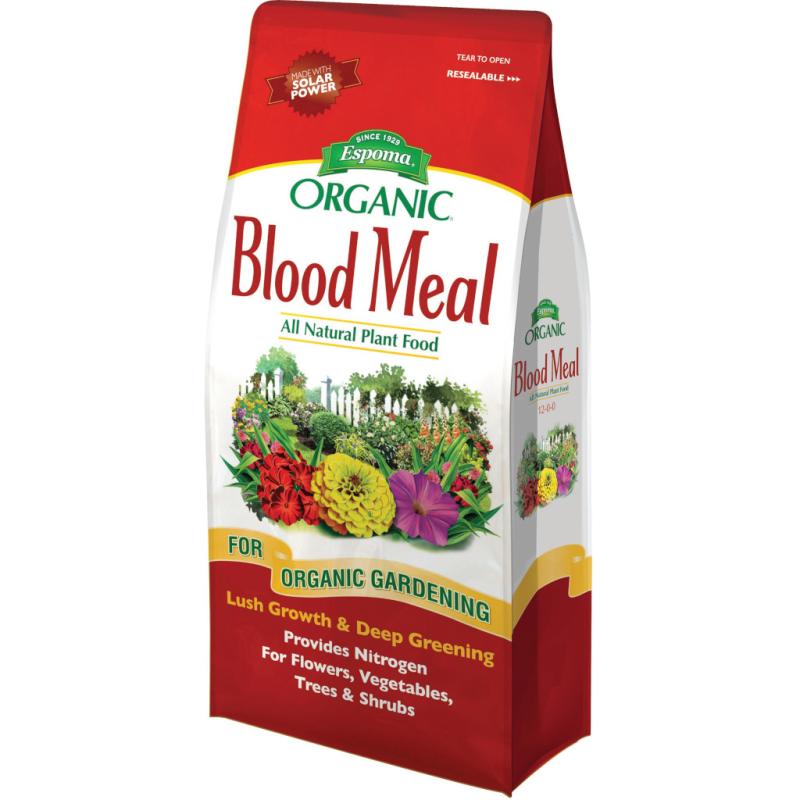 Espoma Organic Blood Meal is an all-natural organic source of nitrogen that promotes rapid growth and deep, dark green color. Blood Meal is an ideal supplement for all annuals and perennials. Like all Espoma Organic plant foods, no sludges or fillers are ever used. And because itโ€™s made in our state-of-the-art solar powered manufacturing facility, consistency and quality are guaranteed.
