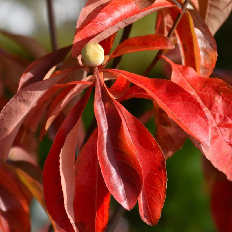 An extremely rare small tree with an interesting history; large white flowers in mid-summer and incredible fall colors, makes a great accent plant; very particular about growing conditions, needs light, well-drained acidic soils and adequate moisture