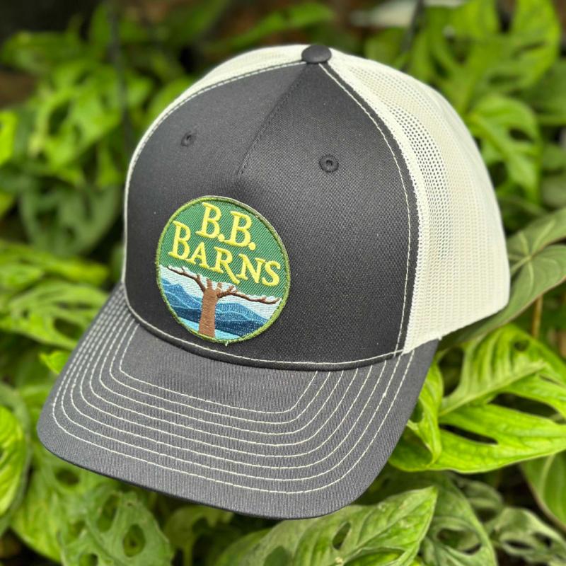 Our Navy White Hat features a trucker style mesh sides and rear to keep your head cool while you’re working in the yard or garden, and a cotton-polyester front featuring a premium embroidered patch of your favorite garden center’s logo. Look good while reminding everyone that you get the best quality plants at B.B. Barns!