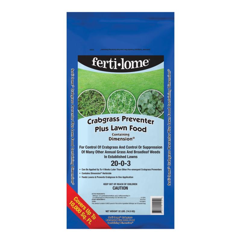 Crabgrass Preventer Plus Lawn Food containing Dimension ® 20-0-3 controls Crabgrass and controls or suppresses many other annual grass and broadleaf weeds in established lawns.
