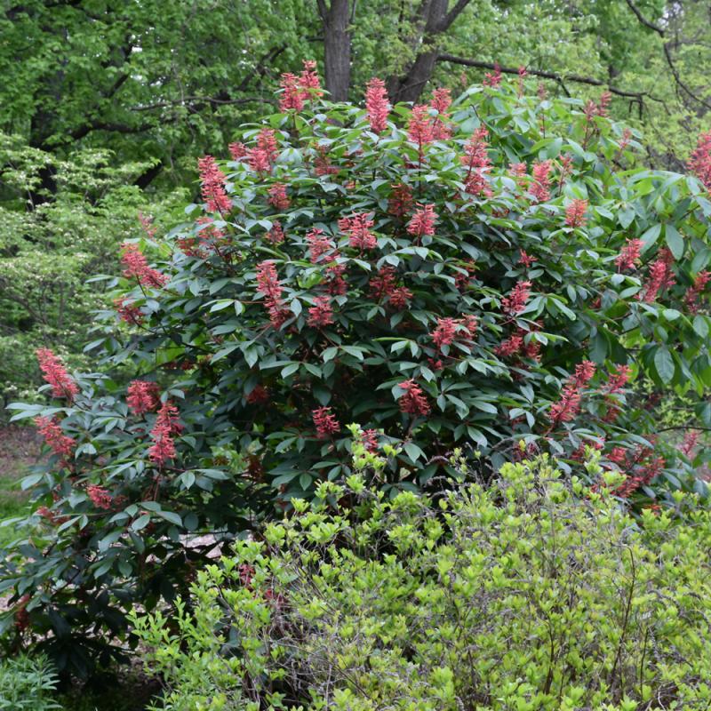 A very attractive small tree for general garden use, with upright panicles of intensely red flowers in spring; just the right size for small home landscapes and gardens, makes a great small feature tree