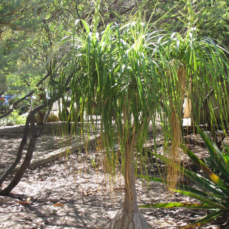 A stunning plant that develops a swollen base over time, under rising tufts of narrow green leaves; rarely, if ever blooms indoors; water deeply but infrequently; protect from frost; an excellent indoor accent plant for a bright area