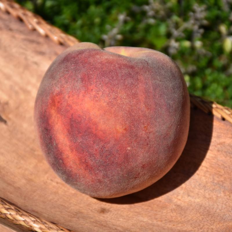 A vigorous, hardy selection bearing large, yellow, freestone peaches that are blushed with red; showy pink flowers in spring on an upright growing habit; susceptible to late spring freezes and disease, needs full sun and well-drained soil