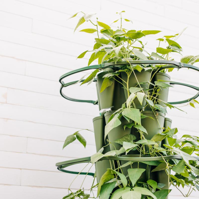 Looking for even more support? Grow an even wider variety of fruits and vegetables with our set of three patented heavy-duty plant supports proudly made in East Tennessee. Our Plant Supports act as a stabilizing plant support frame, making it perfect for stalking and trellising larger plants. For plants that grow vertically, place the Plant Supports on the tier above the desired planted pockets. Experience the joy of containerized gardening for yourself with GreenStalk Plant Supports!