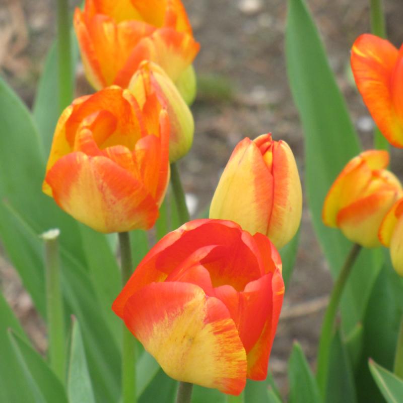 A beautiful color changing variety emerging soft yellow with raspberry edges, morphing to shades of cream, orange and gold with deep ruby edges; mid-late spring blooming, great for beds, borders and containers; excellent cut flower quality