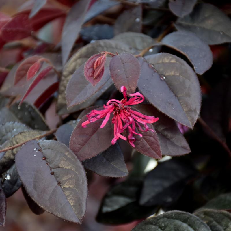 A very showy, spring-blooming shrub, with fine, rich magenta-pink, strap-like flowers literally smothering the plant; new leaves are rich burgundy and have a purplish-red cast all season; a well-behaved shrub, perfect as a screen or hedge