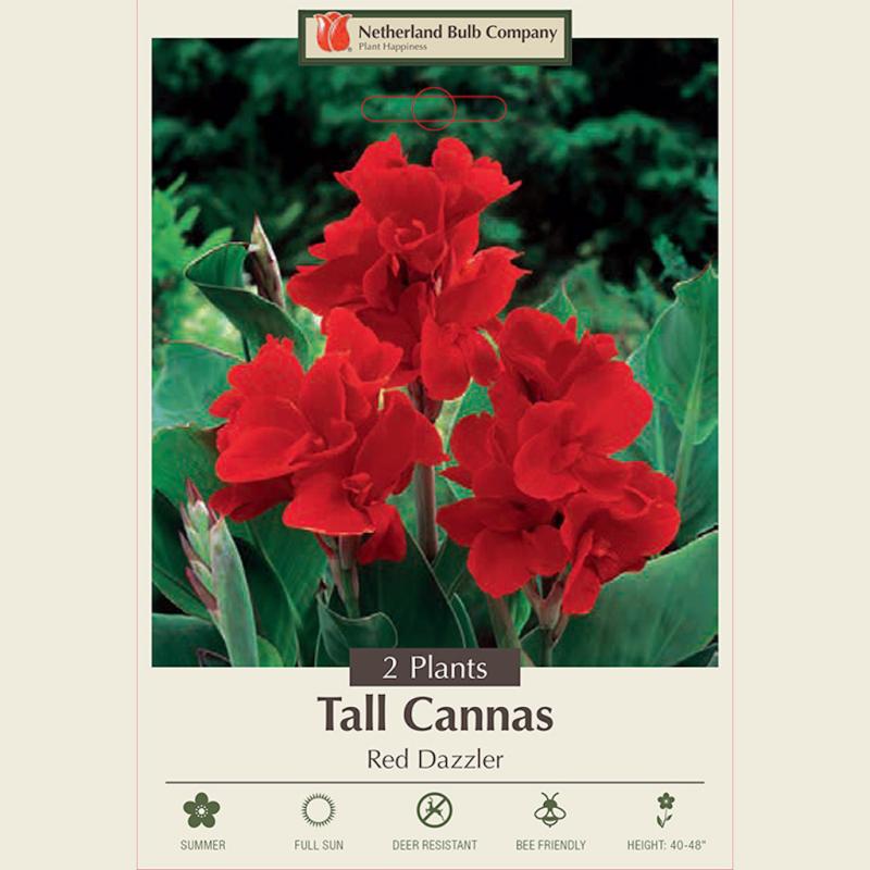 ‘Red Dazzler’ is a towering canna with brilliant red flowers and strong vertical presence, perfect for creating eye-catching backdrops in sunny beds.
