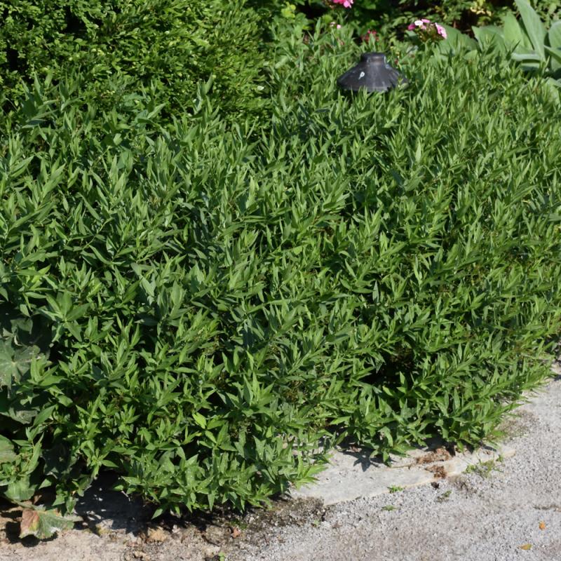 This variety is more compact than the species with deeper blue flowers; lovely along borders or edges; an impressive statement in blue when massed