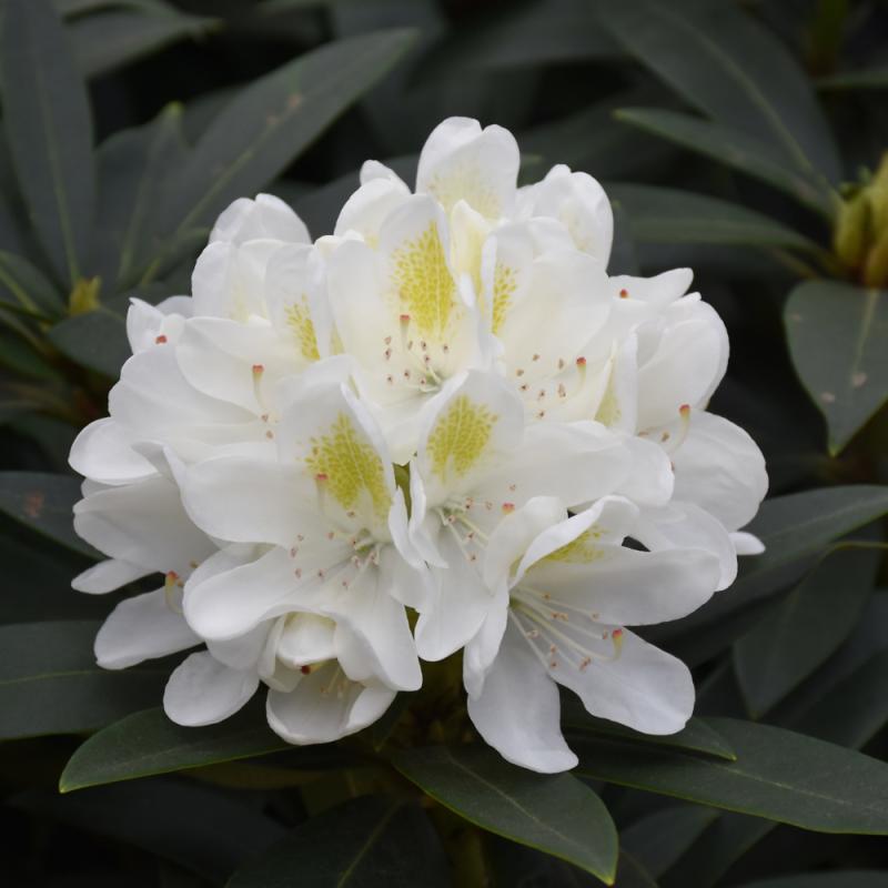 Attractive large white blooms with yellow blotches adorn this stately variety in mid spring; an accent or border shrub that will definitely stand out; absolutely must have well-drained, highly acidic and organic soil