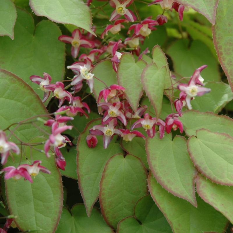 Delicate shooting star-like cherry-red flowers; heart-shaped green leaves have reddish overtones in spring and fall; makes a great groundcover that is tolerant of dry shade once established; also grows well in moisture if well-drained