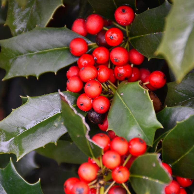 This splendid ornamental evergreen keeps its pyramidal shape with little to no pruning; it has glossy, toothed foliage and loads of brilliant red fruit that attracts birds; unusual drought and heat tolerance; a vigorous grower