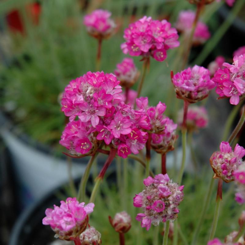 This compact plant is great in rock and alpine gardens; pretty rose-red clusters of flowers rise above glossy, grassy foliage forming a neat clump; will tolerate areas affected by salt and heat