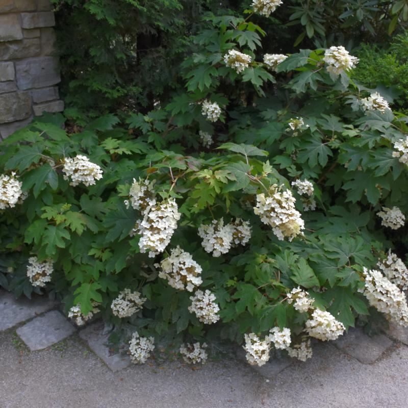 An choice compact garden or massing shrub featuring showy spikes of flowers which fade from pure white to pink, interesting foliage with spectacular fall color and papery bark; somewhat coarse in appearance, best used in groupings