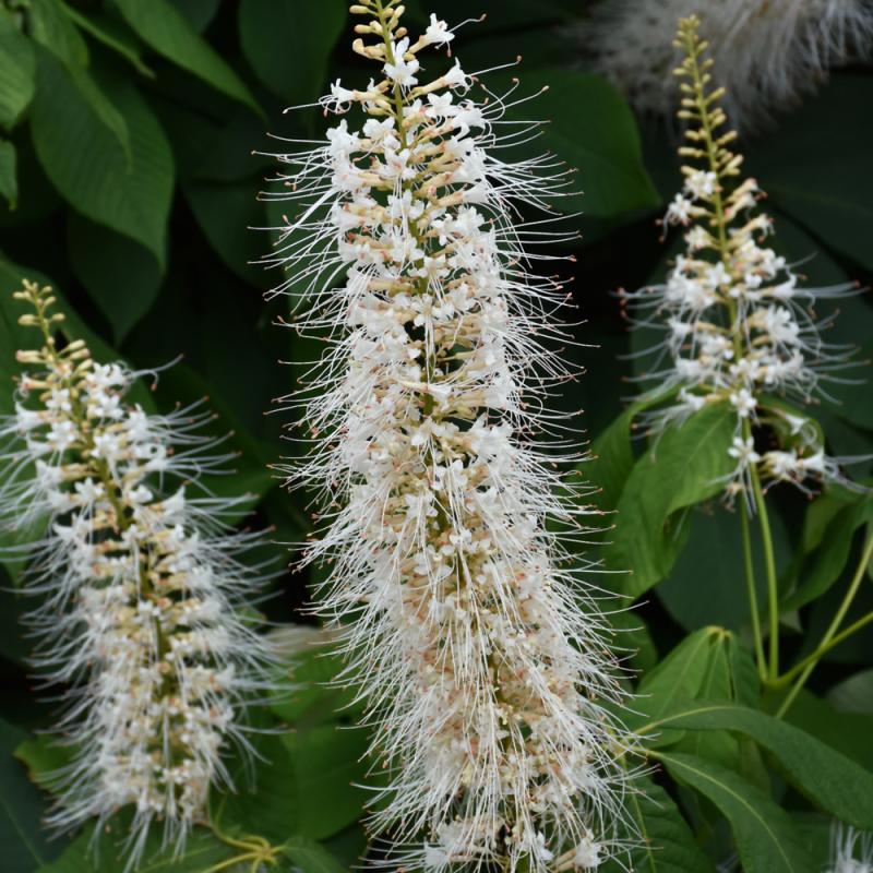 One of the best shrubs for massing over a large area, this beauty suckers to form large impenetrable colonies; when adorned with showy white flower spikes in summer, it can be a sight to behold; use appropriately, definitely not for the average garden