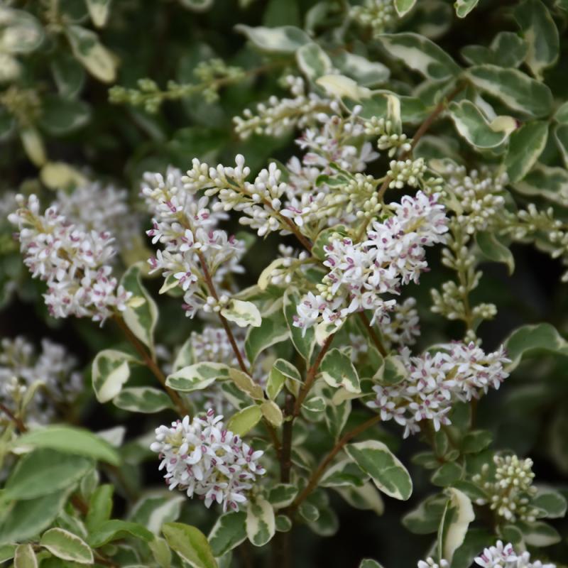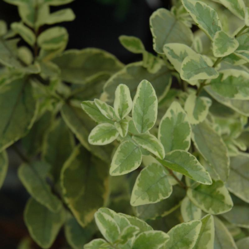 An outstanding variety producing dense variegated foliage that is olive green with cream margins; color is best in full sun; a wonderful color addition for borders, screens; makes a distinctive hedge
