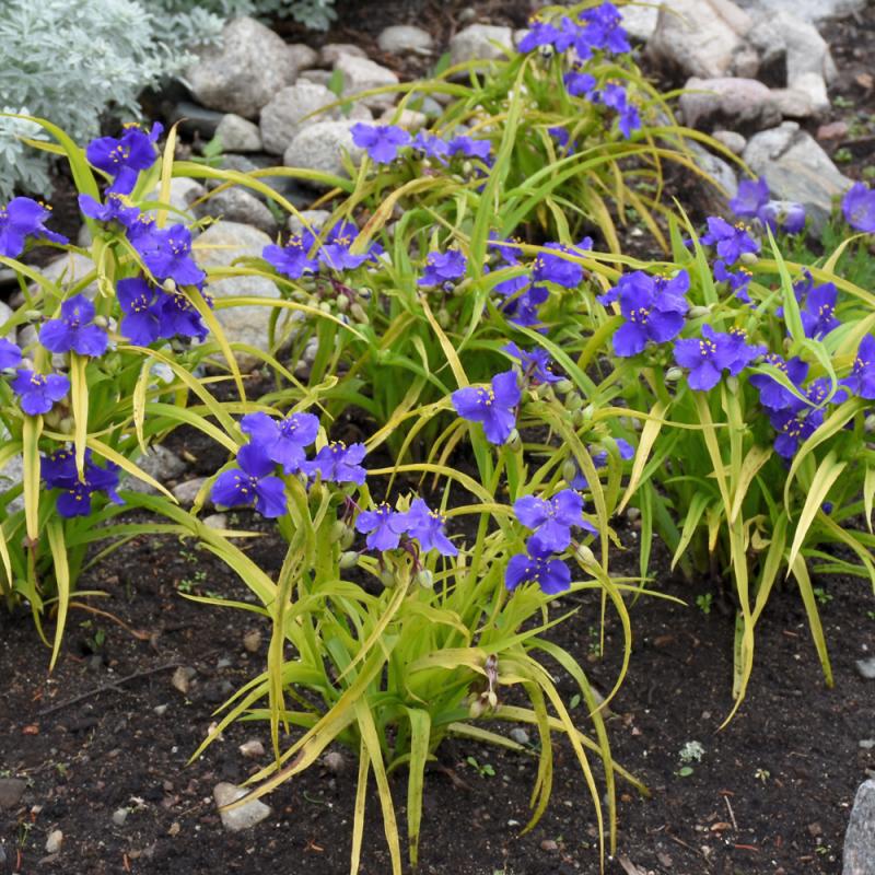Sweet Kate Spiderwort has masses of beautiful clusters of royal blue flowers at the ends of the stems from early to late summer, which are most effective when planted in groupings. Its attractive grassy leaves emerge gold in spring, turning chartreuse in color throughout the season.