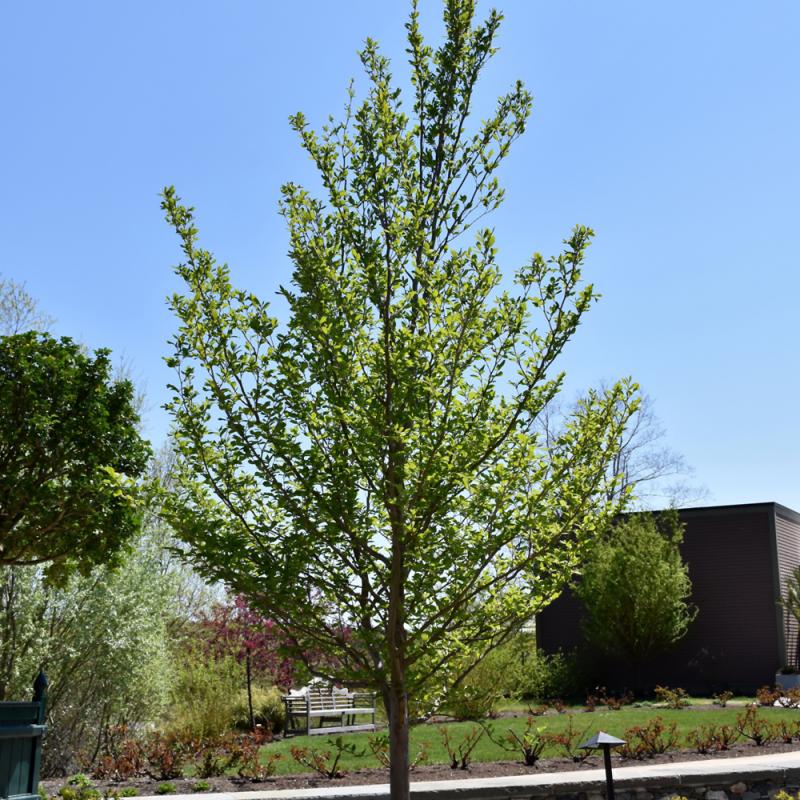 An incredible accent tree with magnificent mottled bark in cream, brown and tan, stunning in winter; showy large white flowers with orange centers in early summer; needs organic, acidic soil and protection from drying winds, a rather sensitive plant