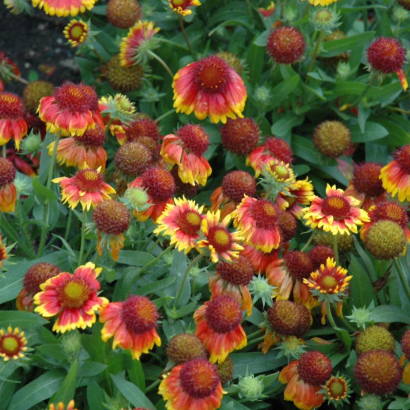 Compact with excellent heat and drought tolerance, this variety produces gorgeous red flowers with golden yellow tips on mounds of green foliage; blooming from summer to fall, great for sunny beds, borders and containers; excellent cut flower