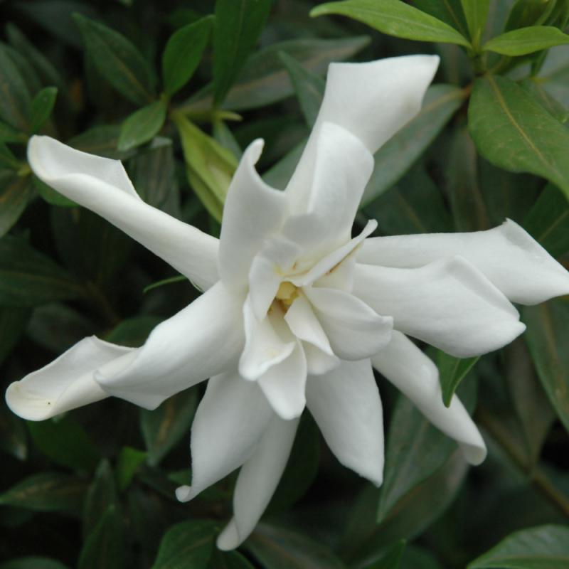 A wonderful Gardenia variety that is far more cold hardy than the species; flower buds resist late spring frosts without damage; an upright bushy shrub with elegant, fragrant white flowers contrasted by deep green foliage; makes a fine hedge