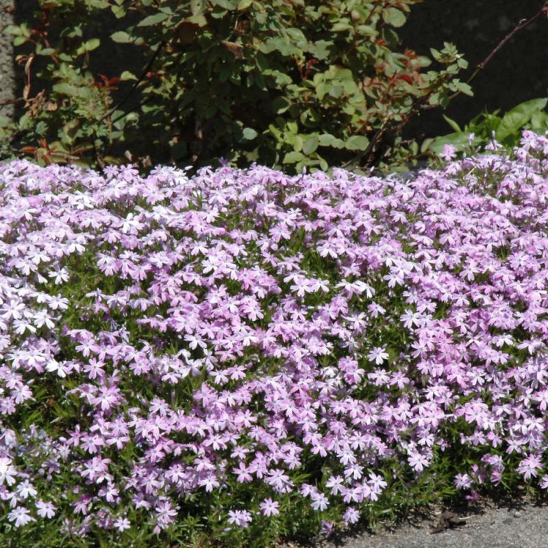 | Emerald Blue Moss Phlox is smothered in stunning lavender star-shaped flowers at the ends of the stems from early to late spring. Its tiny needle-like leaves remain emerald green in color throughout the year. |