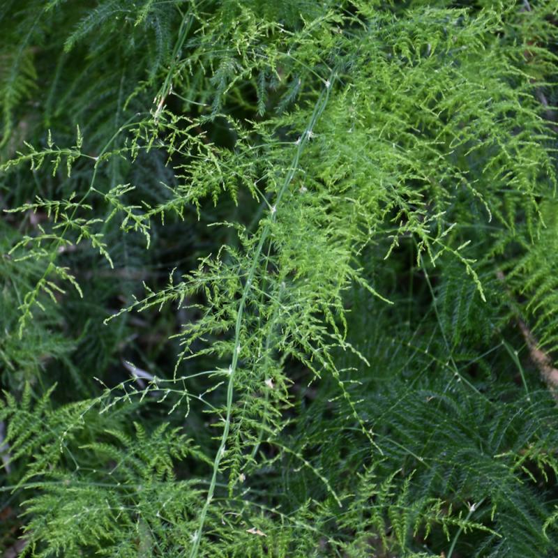 Feathery and soft, this variety creates great visual interest when massed; used widely in floral arrangements; small greenish-white flowers in summer followed by green berries that mature to black; a very fine garden or container plant