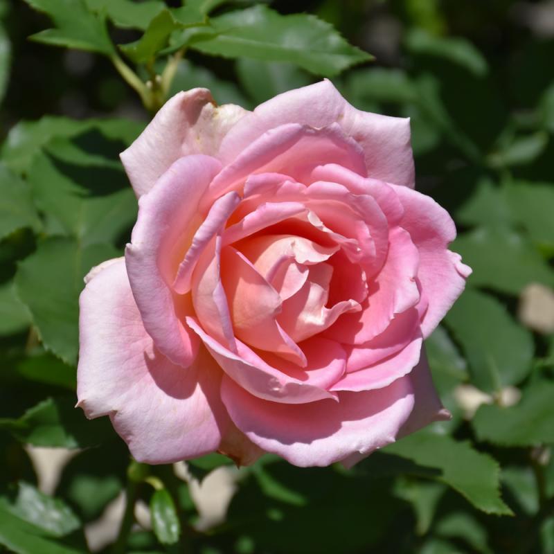 A popular dazzling tea rose that's big with the florists, has tremendously sweet flowers, fully double in a coral pink that fades to yellow near the base of the petals, very floriferous; all roses need full sun and well-drained soil