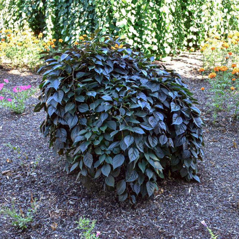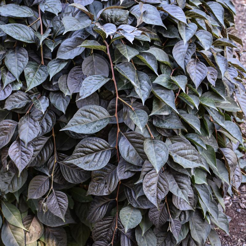 An elegant specimen shrub, featuring delicate, white bell-shaped flowers hanging from gracefully weeping branches in late spring; shiny dark green foliage matures to deep purple-black; needs moist, organic soil and some shelter, does well in part shade
