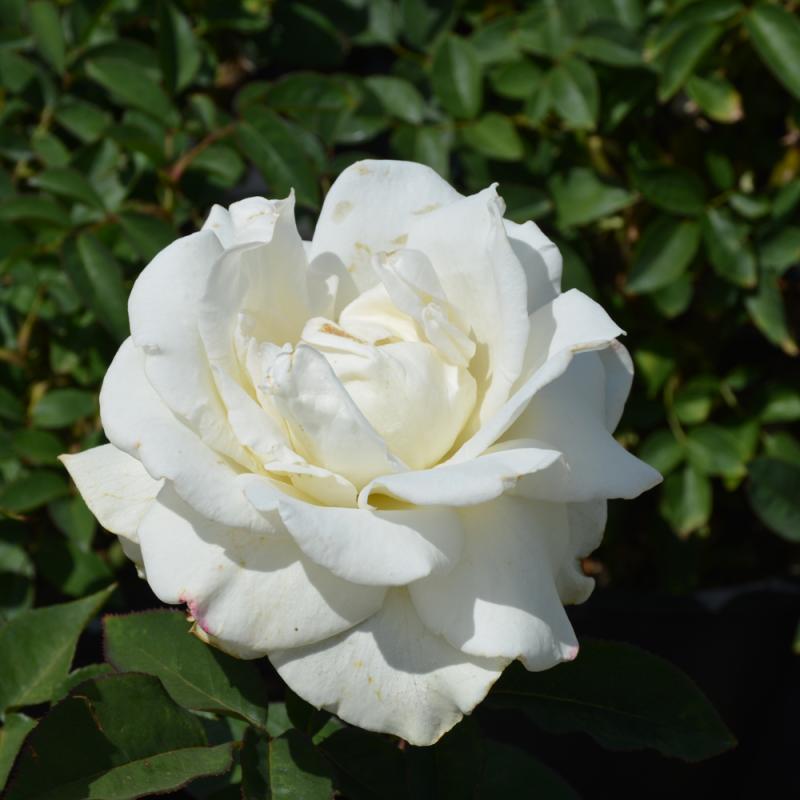 An exceptional rose with a strong fragrance, producing large, elegant white blooms over disease resistant, leathery green foliage; excellent for cutting; blooms in flushes throughout the season; undaunted by hot summers