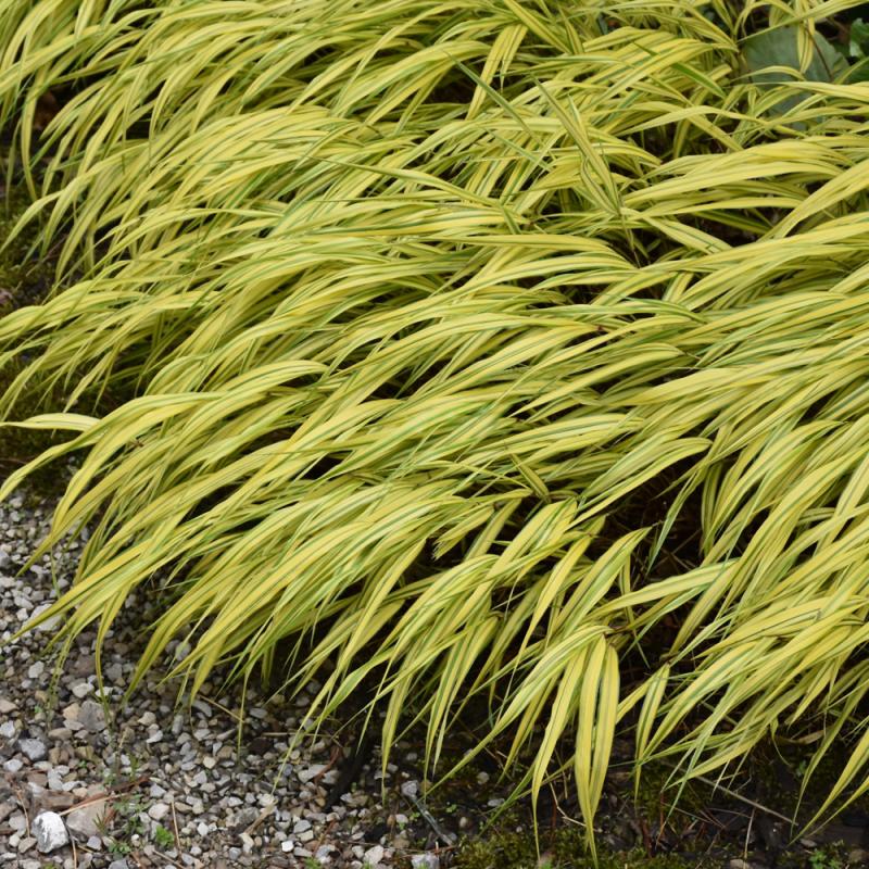 A spreading ornamental grass that produces mounds of arching green and gold foliage; great for shady borders, beds and containers; can be used as shaded groundcover; easy to grow and low maintenance