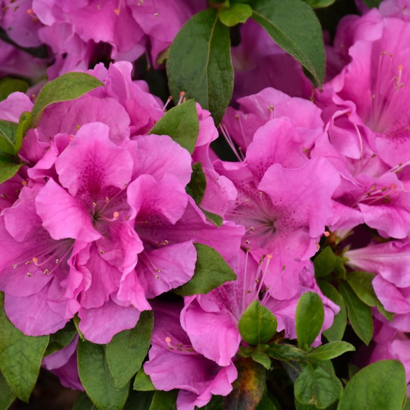Clustered blooms that are lilac with tiny purple spots cover this azalea in mid-spring with an additional, lighter flush in fall; deep green glossy foliage emerges light green; needs highly acidic and organic soil that is well drained