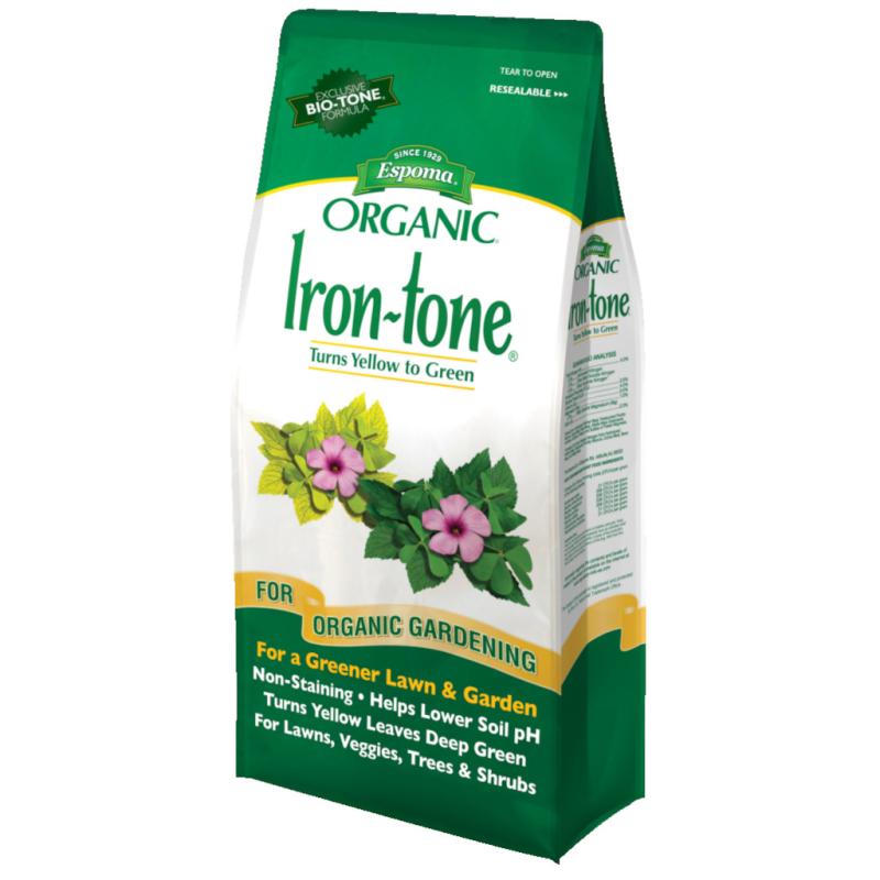 Iron-tone helps turn yellow chlorotic plants back to green! It’s a rich blend of the finest natural & organic ingredients and enhanced with beneficial microbes. No sludges or fillers are ever used. And because it’s made in our state-of-the-art solar powered manufacturing facility, consistency and quality are guaranteed.