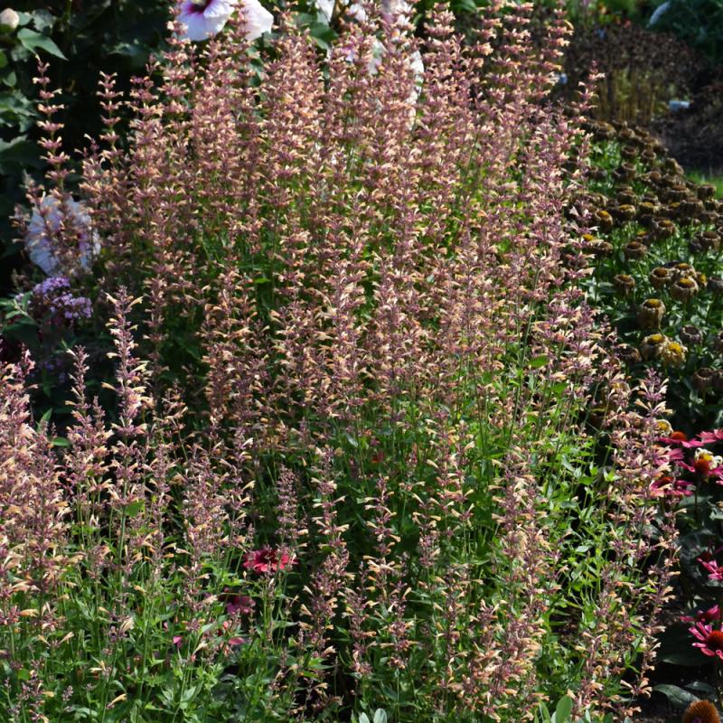Easy to grow perennial flowers on airy spikes add lovely texture to any garden; soft peach blooms on mauve calyxes that hold their color after blooming; a favorite for butterflies and hummingbirds; aromatic, licorice scented foliage for a fragrant garden