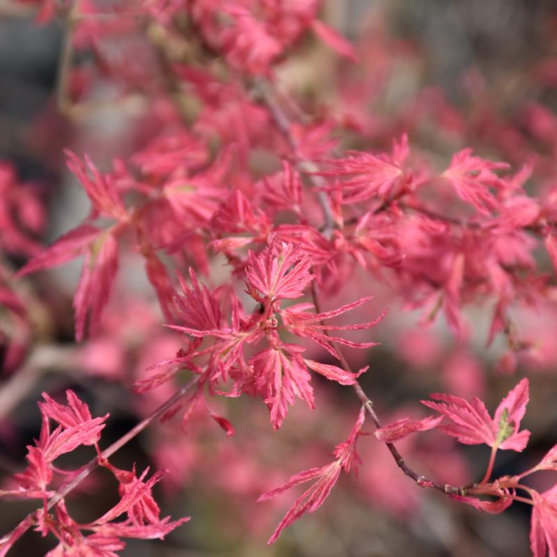 An incredibly artistic accent plant for the garden, or container; features foliage that emerges salmon pink, then takes on some green and white in summer; fall color is vivid red-pink; must be well drained; best planted in a well sheltered location