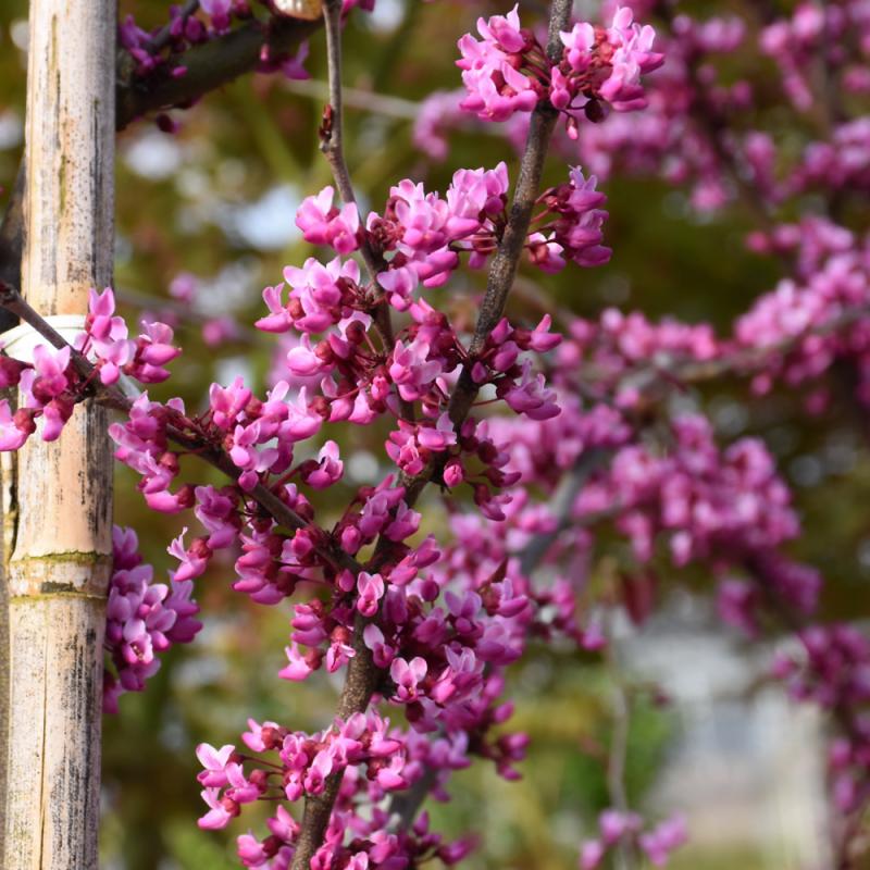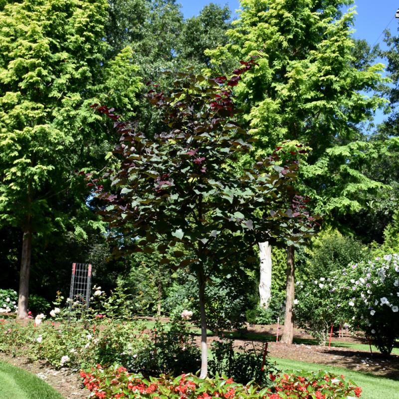 A spectacular and hardy spring bloomer, with very showy bright pink flowers on bare branches in early spring; velvety, deep burgundy, heart-shaped leaves; a top choice ornamental tree for specimen use in the landscape