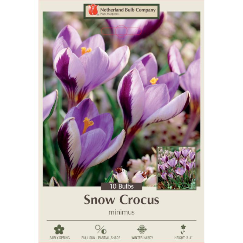 A charming miniature crocus with pale lilac petals flamed dark plum on the outside, a paler lavender-purple on the inside contrasting pale yellow anthers. The flowers are quite small but produced in profusion, making up for their small stature. Its grass-like foliage features narrow, dark green leaves with a very thin central silver stripe.
