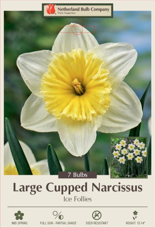 Large Cupped Narcissus are known for their traditional narcissus shape; a large flower on one stem with a large center cup.