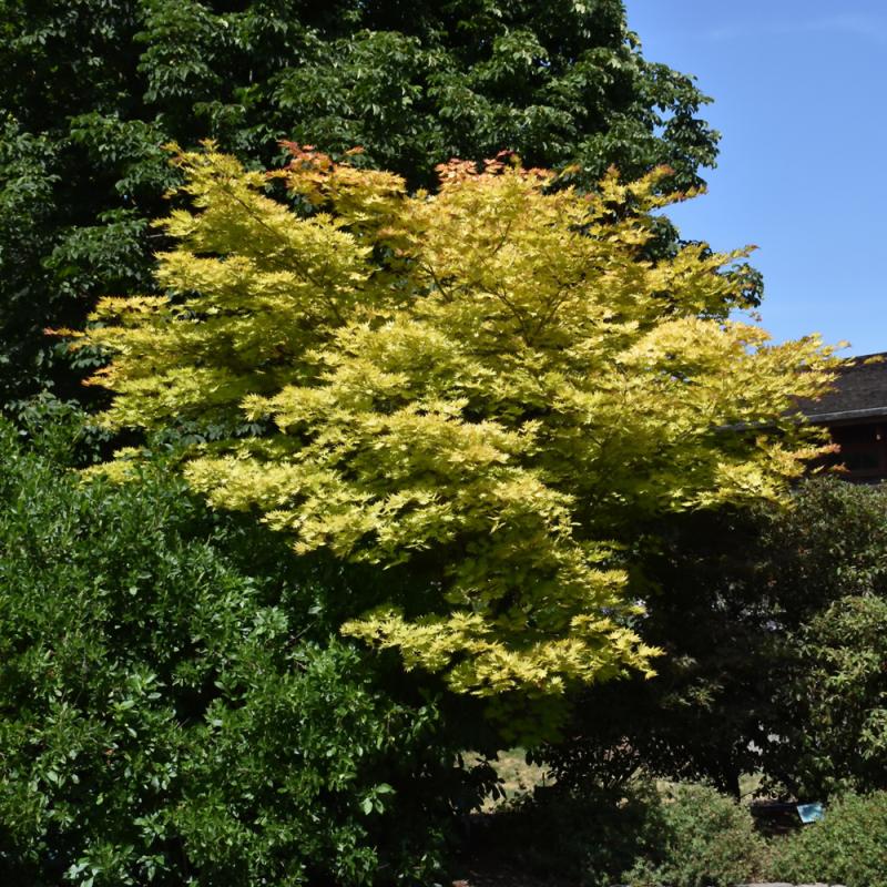 This new introduction is taking the plant world by storm with its golden foliage tipped in rich red which lasts into summer, followed by vibrant fall color, the effect is stunning; an ideal accent for the bright home landscape