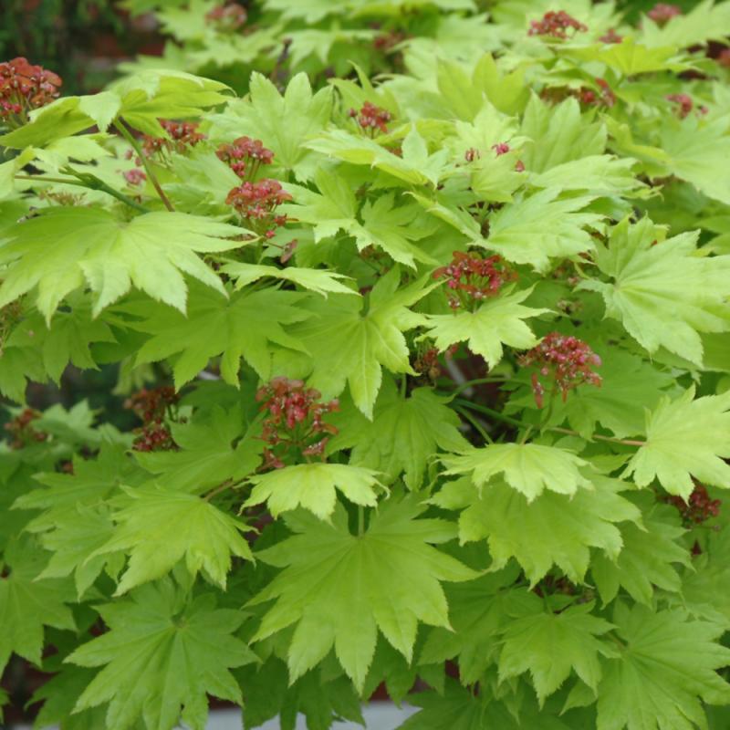 Lime-green hand-like foliage emerges bright gold and glows throughout the summer on this dazzling small accent tree; vibrant fall colors of gold touched with red; this shapely tree deserves to be in every yard