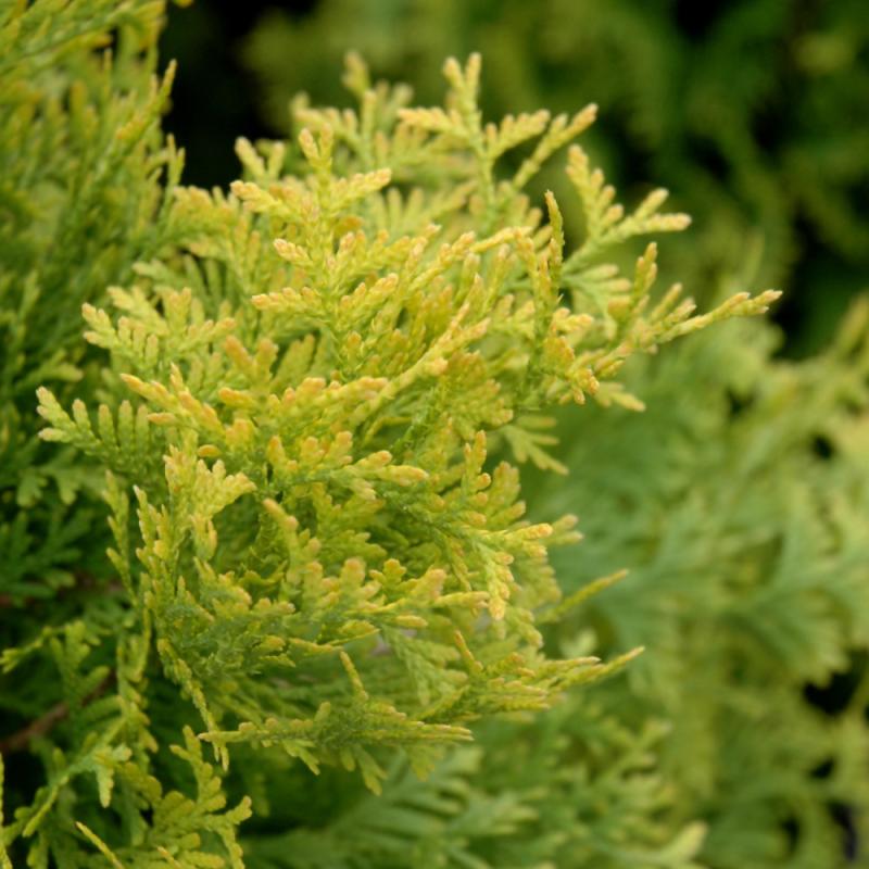 A striking upright evergreen shrub for home landscapes, maintains a dense, compact shape without pruning, features stunning yellow foliage that turns amber-gold in winter; hardy and adaptable, best with adequate sun, protect from drying winds