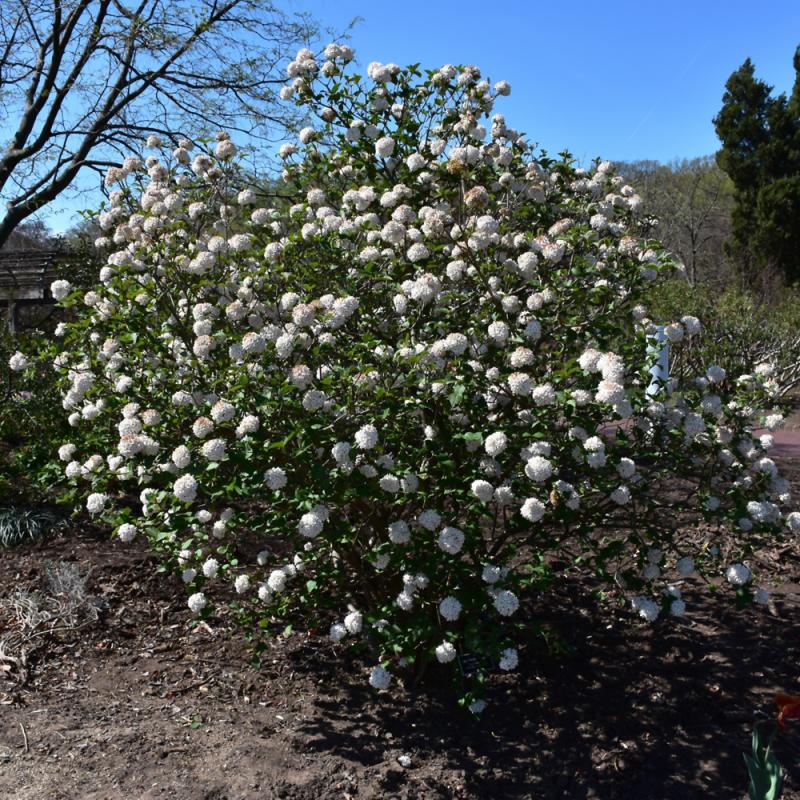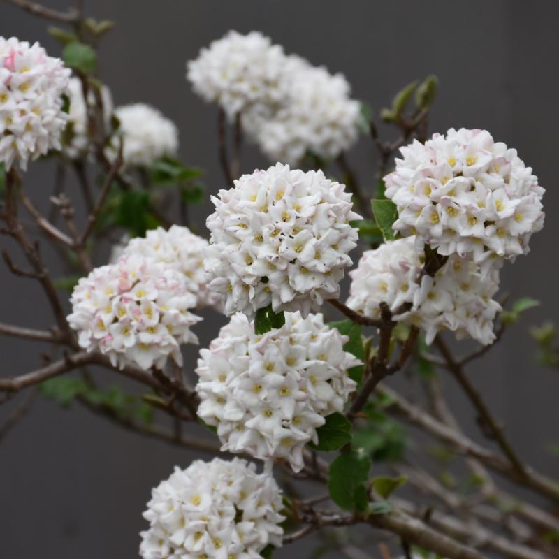 An extravagant shrub for the fragrant garden, covered in deliciously fragrant ball-shaped clusters of pinkish-white flowers in spring with an upright, compact habit, plant where the fragrance can be enjoyed; a beautiful specimen for the shrub border