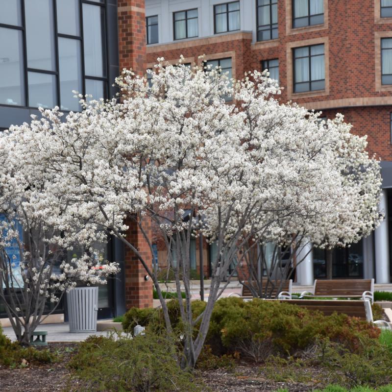A great small tree prized for its abundance of showy white flowers in spring and consistently beautiful fall colors; a great three-season shade tree for small landscapes