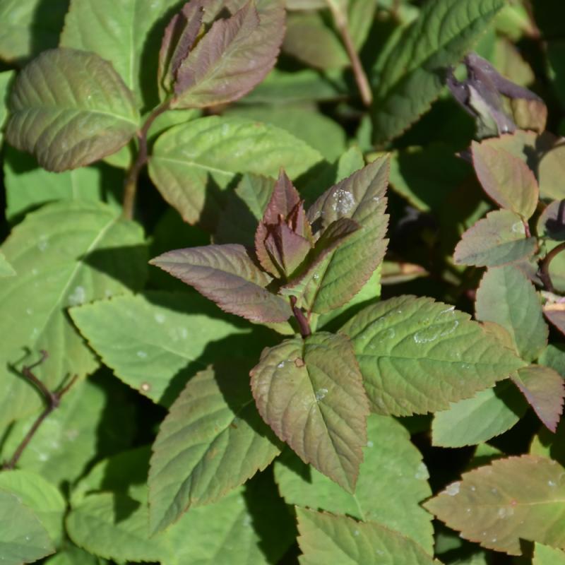 This variety features steel blue-green foliage that turns red in fall; elegant clusters of white blooms cover this shrub in spring; fantastic as a garden focal point, or low hedge