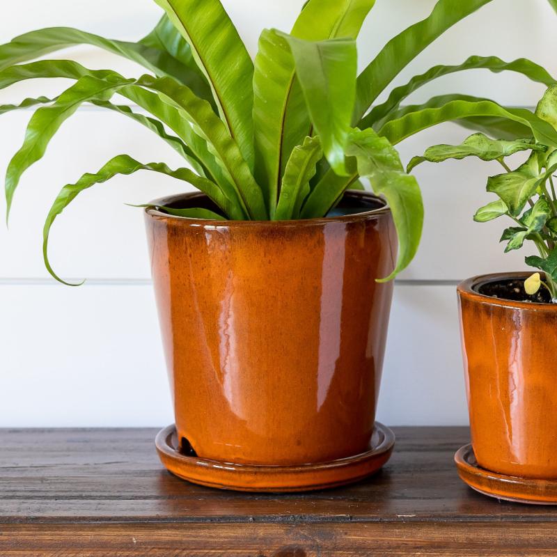 Ceramic container with attached saucer.