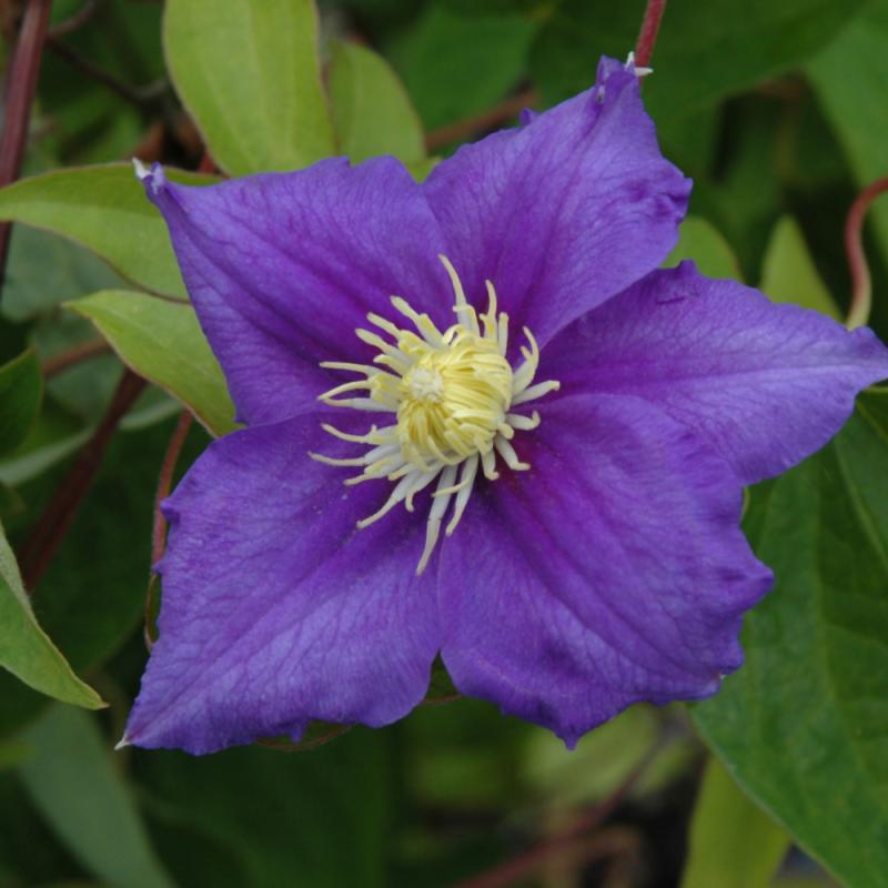 Spectacular semi-double light purple-blue flowers are produced on a vigorous vine, a great plant for the novice and expert gardener alike