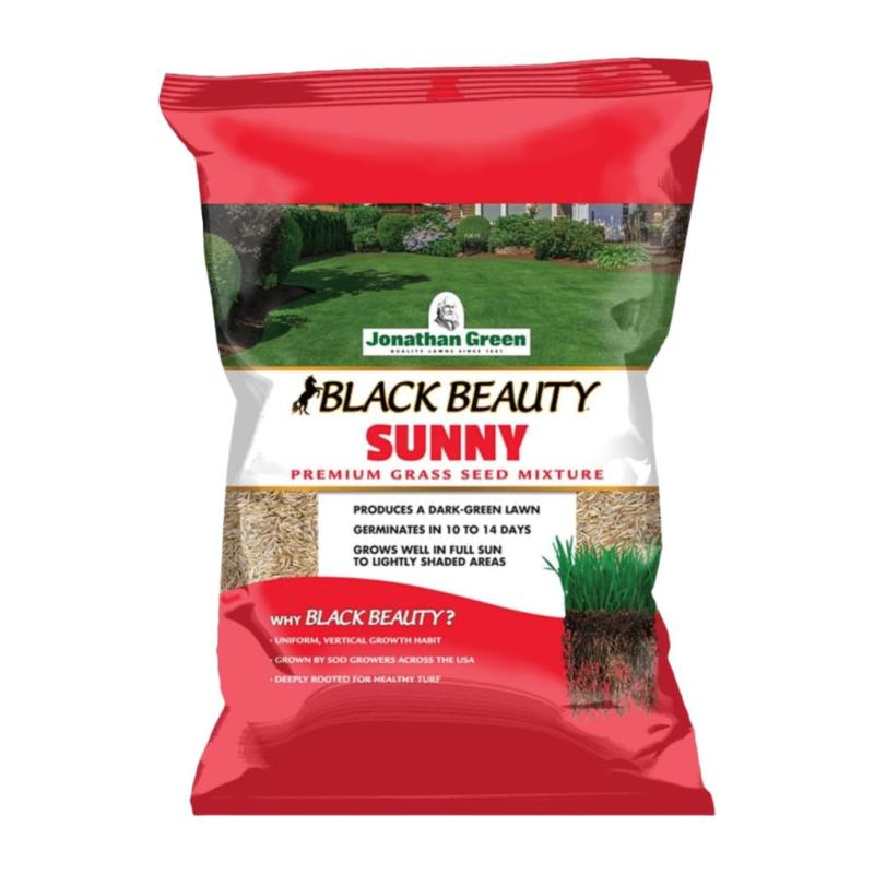 Jonathan Green 3 lb. Black Beauty Full Sun Grass Seed Mixture. It will provide a long-lasting lawn of the highest quality. It contains the highest-ranking endophytic varieties that deter damage from insects. This drought and heat-tolerant grass seed is suitable for small lawns (< 4000 square ft) in the North. It can be applied in multi-season.