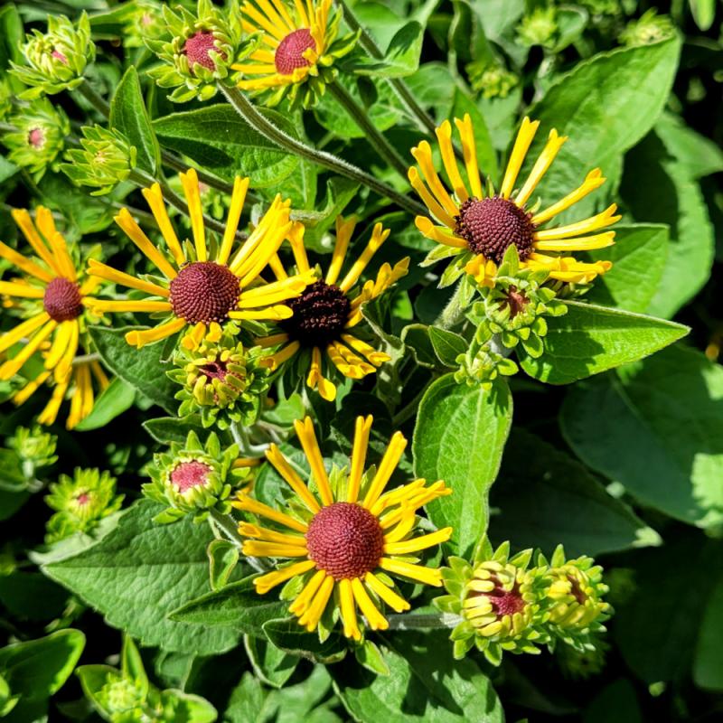 This interesting and charming, compact variety has unusual yellow-gold quilled petals with brown button centers; has a mild anise scent; great for cut flowers; a narrow upright grower that makes it a great specimen for the mid-border; very appealing