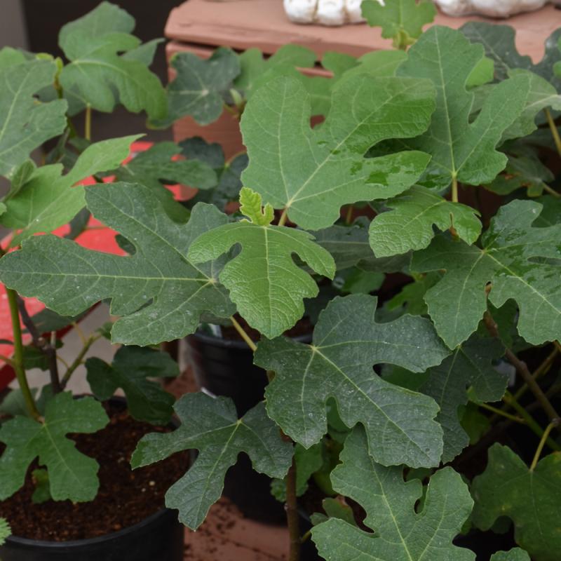 An extremely dwarf variety with a low, mounding habit; attractive, deeply lobed, green foliage and brown fruit with pink-red flesh; bears fruit throughout the year; perfect for urban gardening, indoors as well as outdoors; attracts birds