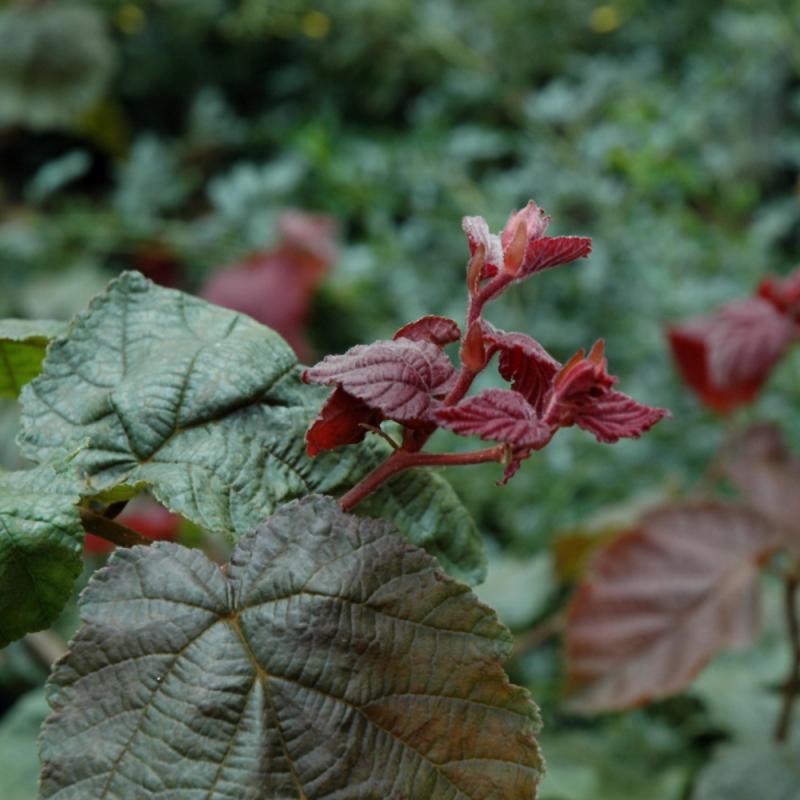 A phenomenal find with twisted, contorted branch growth and rich burgundy-red foliage; a strong accent in both summer and in winter when the bare branches are at peak visibility; for solitary use only, cut branches are excellent in floral arrangements