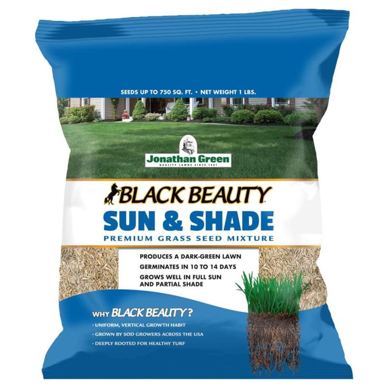 Jonathan Green Black Beauty Sun & Shade Grass Seed performs exceptionally well in either full sun or partial shade growing conditions. This mix is perfect for overseeding and will fill in bare spots quickly to improve the appearance of an entire lawn. Sun & Shade contains the four families of cool-season turfgrasses: turf-type tall fescues, Kentucky bluegrass, perennial ryegrass, and fine fescue, making this our most versatile grass seed mixture.