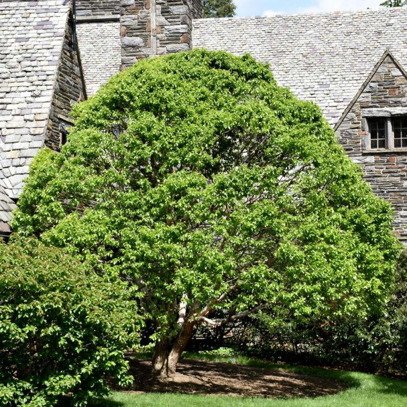 A wonderful dense and compact landscape-scale birch, more of an irregularly rounded-spreading large shrub than a tree, with interesting cinnamon colored bark; ideal size for use in a garden setting